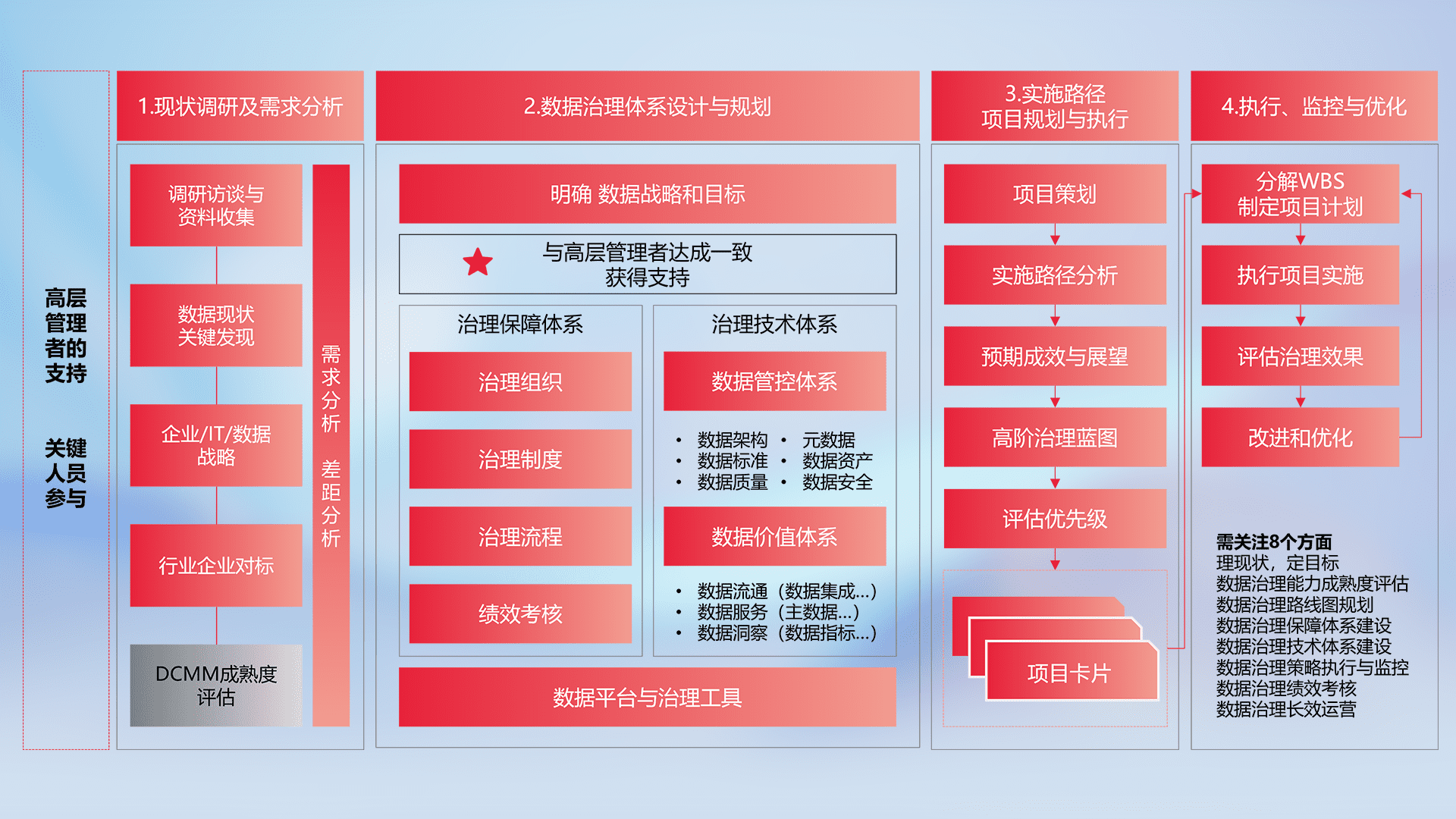 制定并执行统一的数据标准,,,,规范数据定义和格式,,,,消除冗余和不一致性,,实现跨部门和跨系统的数据一致性,,,为企业提供标准化的数据基础。。。